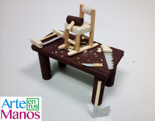 Pensando en crear ideas para belenes, pesebres o nacimientos, quisimos compartir una mesa para carpintero y las herramientas que se utilizan en este oficio, todas estas miniaturas pueden ser de ayuda e inspirar a realizar tus propias ideas.