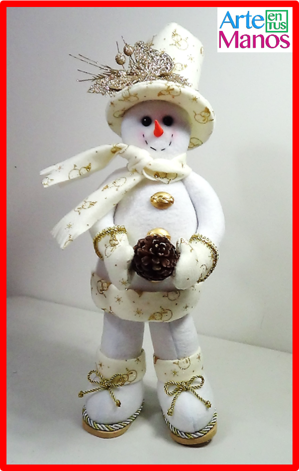 Para hoy vamos a compartir como realizar este muñeco de nieve y como lo vamos a decorar en tonos crema y dorado, muy navideño!