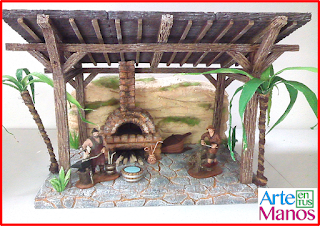 Como sabemos que les gustan las ideas y técnicas para belenes, esta vez compartimos el taller del herrero, de este proyecto anteriormente habíamos hecho un vídeo de como hacer un horno y la técnica para hacer techos y vigas con efecto madera, pues aquí aplicamos todo lo enseñado y muchas ideas más, aprenderán a hacer pisos con efecto roca y pared con efecto de piedra arenisca, esto puede ser de ayuda para hacer un nacimiento o cueva de belén